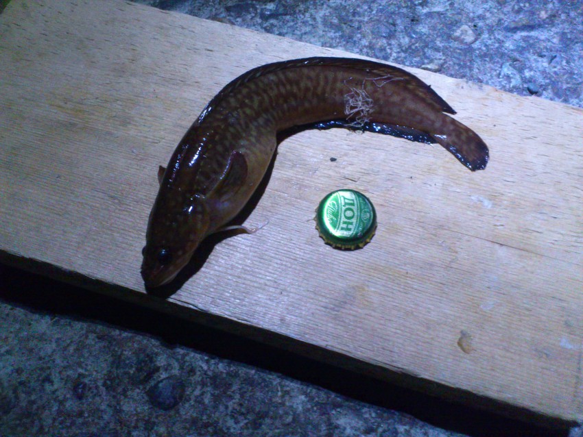 Нашли под корягой почти метрового угря. Жирного и толстого. Перепугались этой «змеи». Только потом узнали что это угорь -)