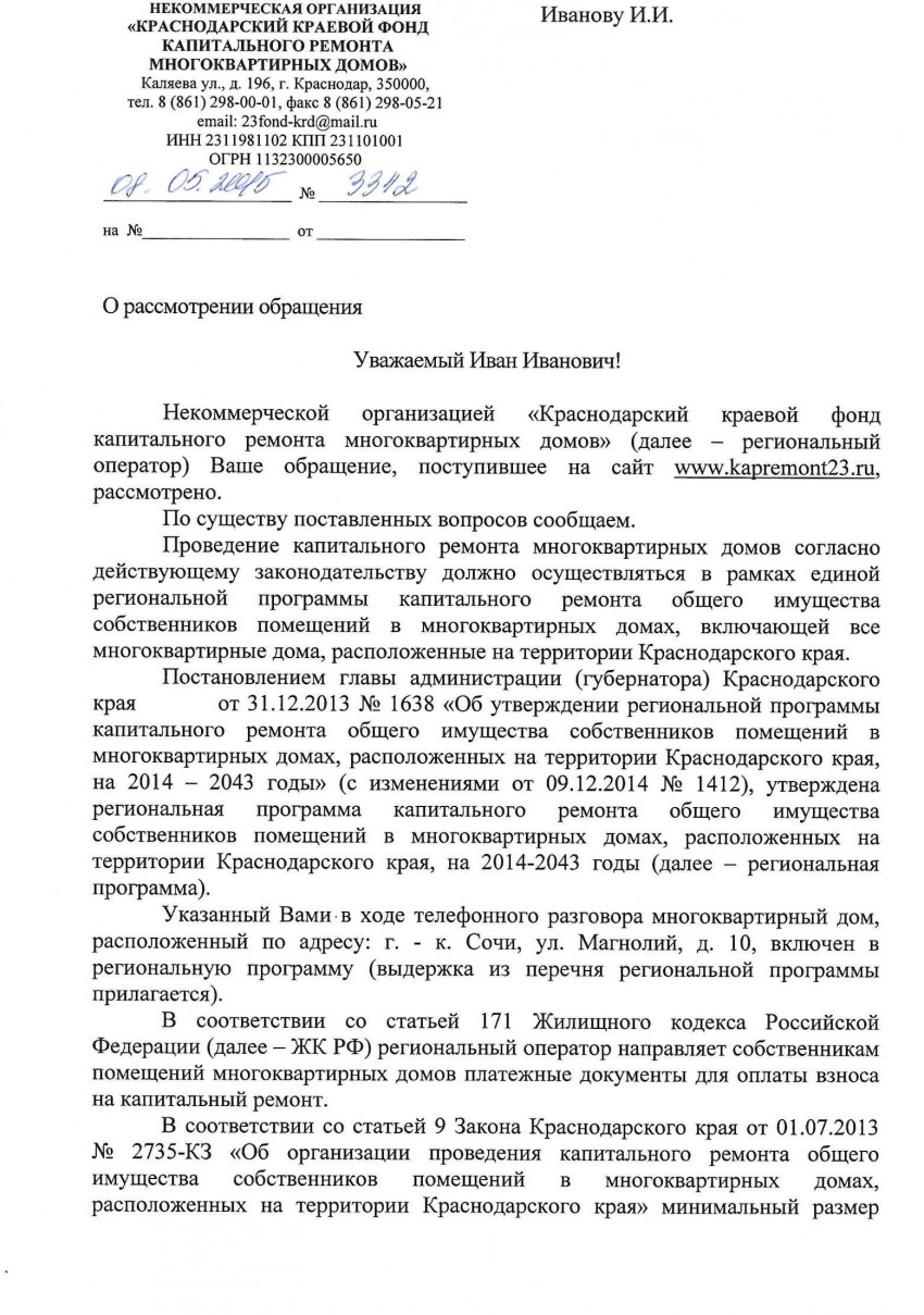 Кому интересно что ответили мне на мое обращение. В законах не сильно понимаю может кто-нибудь разъяснит эти статьи. По телефонам звони раз 5 трубки в сочи ни кто не берет.