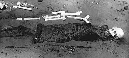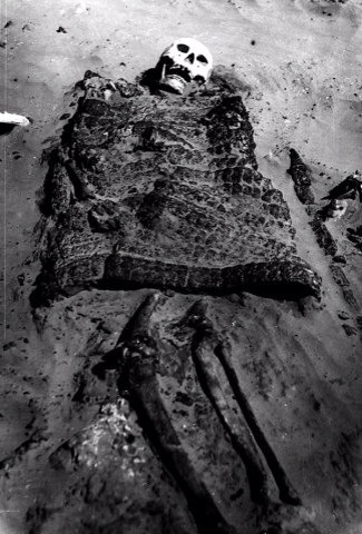 Из этой группы погребений особый интерес представляет погребение воина в доспехах. Это погребение обнаружено на дюнах, среди сыпучих бугристых песков, расположенных вдоль восточного берега оз. Сарайдин, в местности Бек-Бике, в 7 км к востоку от с. Джангалы. Никаких признаков курганной насыпи и очертании могильной ямы не сохранялось.