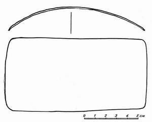 Пластинки панциря скреплялись правильными горизонтальными рядами так, что левый край одной пластинки покрывал правый край другой, а бо-ковые дырочки их совпадали. Расположение рядов панциря идет в такой последовательности: первый верхний ряд пластинок прикреплен (посредством клепки (?)) к четырем железным полосам — две впереди и две сзади, расположенным около плеч. Размер этих полос 19 Х 3.5 см. Пластинки прикреплены к полосам овальным концом вверх; нижний их конец скреплен кожаной обоймой, окаймляющей пластинки на 1 см. Обойма прошита через дырочки ремешком. На первый верхний ряд заходил на 1.5-2 см, следующий нижний ряд, таким образом получалась пластинчатая броня, состоящая из 25 параллельных рядов, расположенных чешуйками снизу вверх.