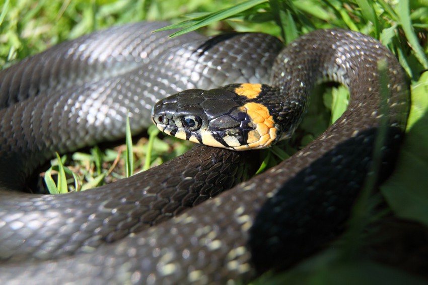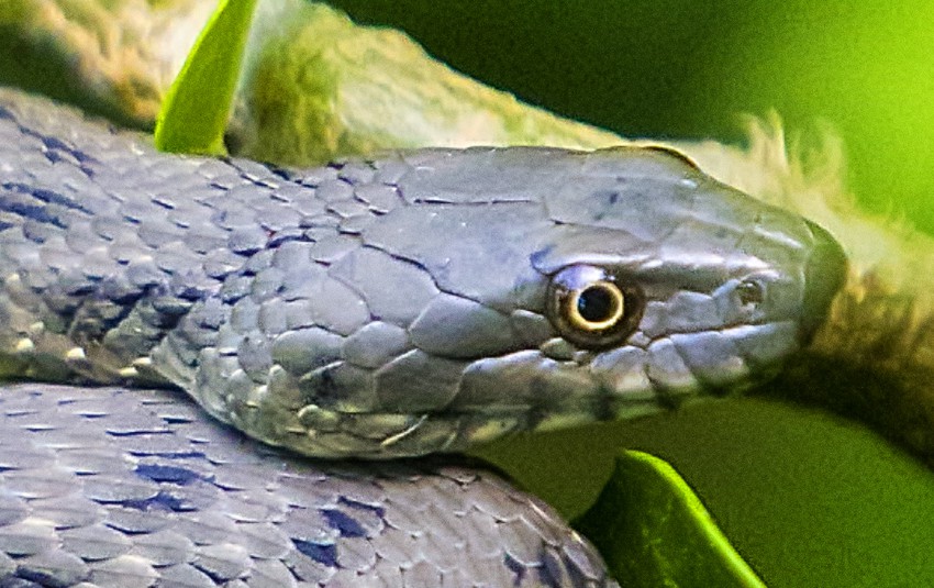 Как вариант принимается. В комментариях здесь есть и другие мнения. Это не тест, на самом деле интересно, кого я сегодня заметил в листве. Змейку не потревожил, снимал издалека. Я пошел дальше, а змейка продолжила нежиться в тени.