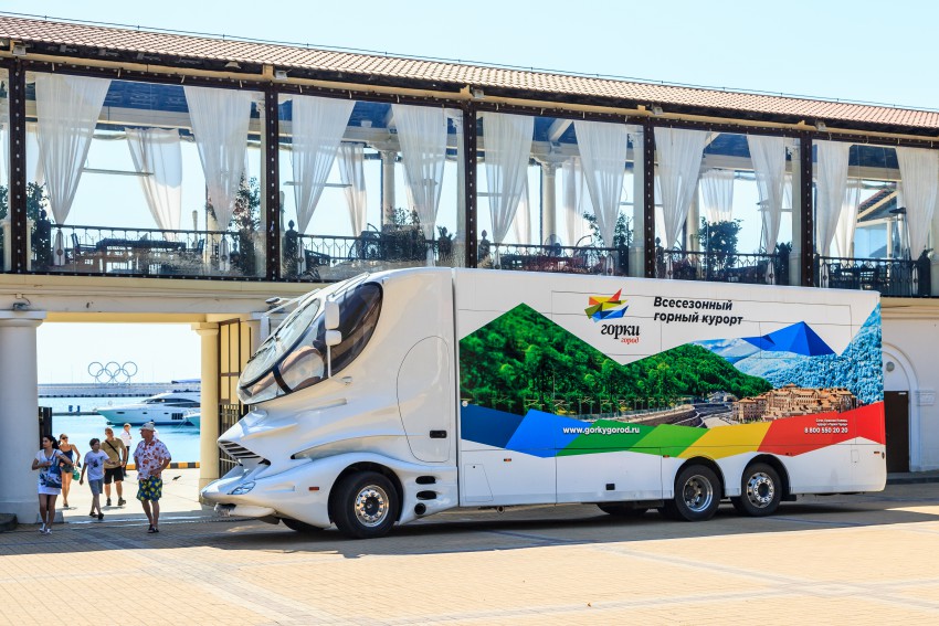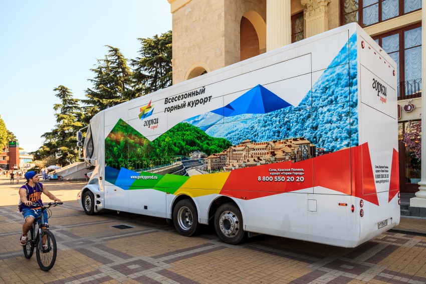 Внутрь пускают всех — там интересно, во-первых услуги курорта со скидками, в т.ч. байк-пассы, во-вторых каждую неделю будут проводиться акции — победитель сможет провести бесплатные выходные в «Горки Город», или выиграть романтический ужин на высоте 2200 метров над уровнем моря.