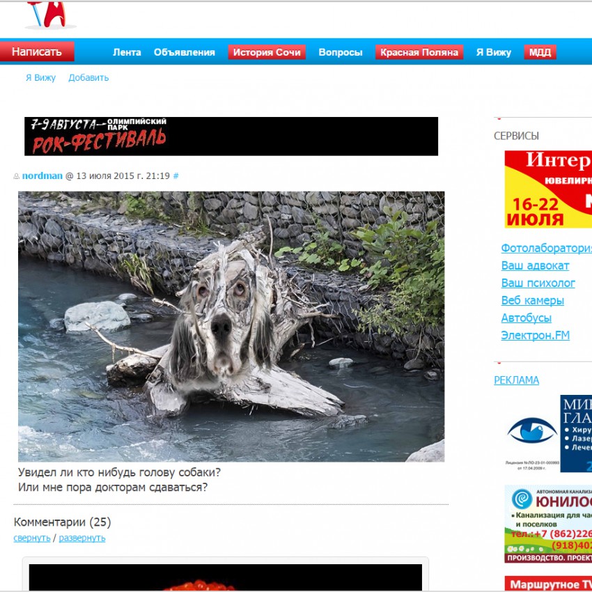 Михаил, к чему такая переделка заглавного фото? Я на самом деле решил спросить народ, достаточно ли видимая ассоциация с головой животного увиденная мною коряга. А это подсказка, показать. куда смотреть.