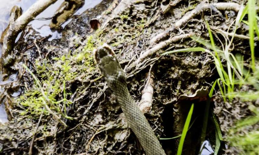 Я снимал очень издалека. Снималось с высоты парапета на набережной. Да и зачем мы нужны ужу? Как пища по размеру не подходим, а драться с нами за территорию никакой уж не станет, скорее сам смоется.