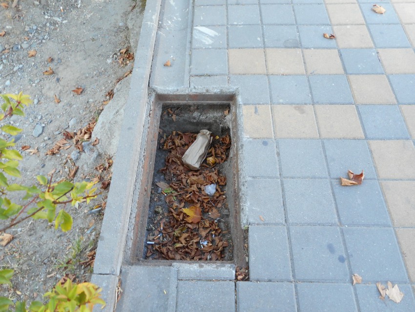 Сегодня ямы почищены от мусора, правда, листва сухая опять немного нападала, и на одной из трёх таких ям появилась решётка!!! Вот уж не знаю — то ли сила Привета помогла, то ли сами увидели…