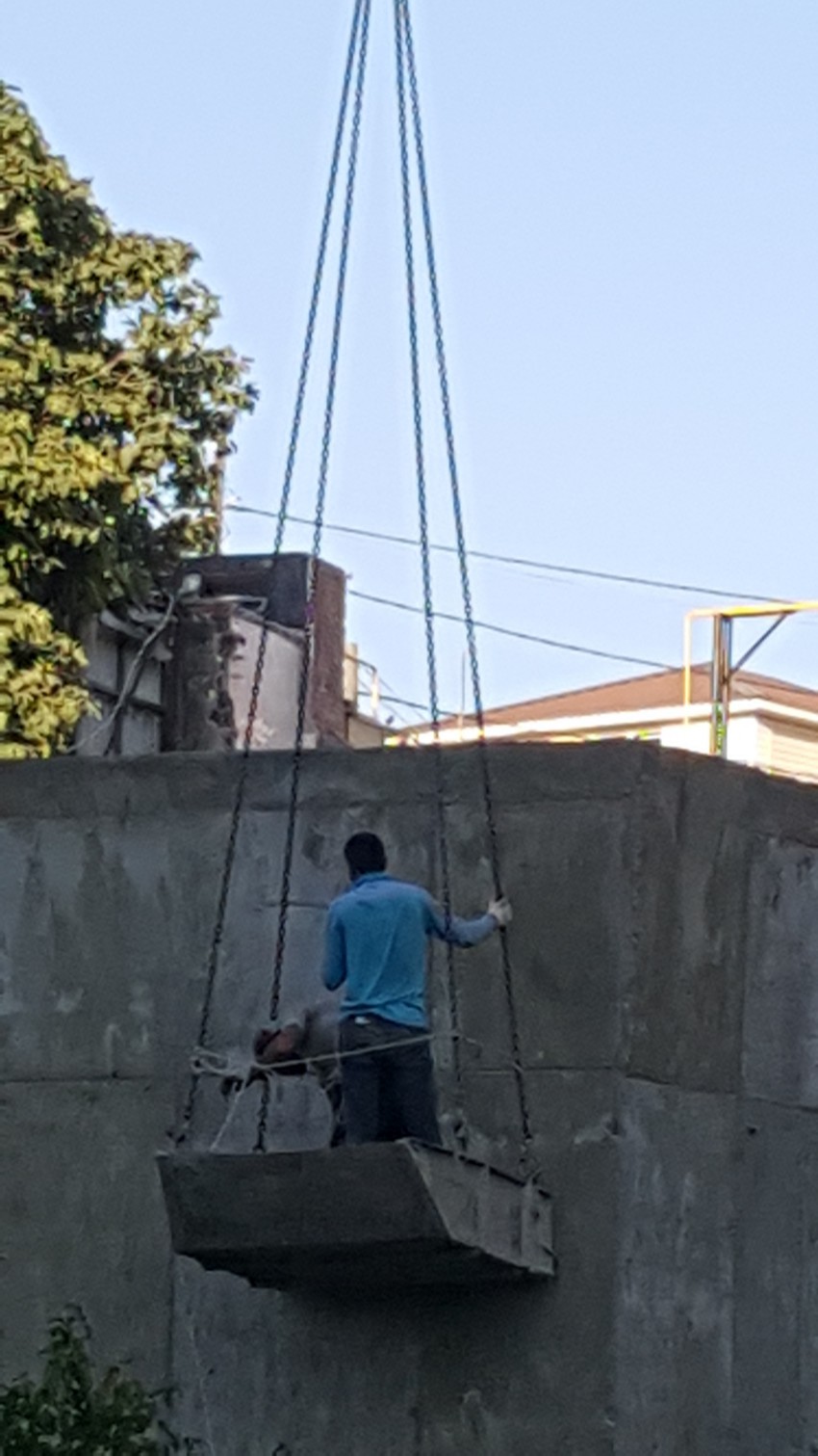 Вобще-то это грубейшее нарушение техники безопасности. Категорически запрещено людей краном поднимать… но нет такого преступления на которое капиталист не пойдет ради прибыли. Экономят застройщики на подъёмнике. Зачем платить за подъёмник если есть кран. А если люди разобьются, то виноват крановой, сам людей в бадью посадил и поднял, а прораб вобще не в курсе, он даже запрещал это делать, но его не было в тот момент… Рафик не в чём не виноват!