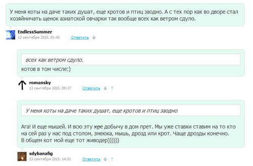 Да ладно, не расстраивайтесь, я когда свою лопатой разрубленную змею здесь показал, тот срач похлеще был. В следующий раз если хотите жёстче взбаламутить этот пансионат благородных девиц, то возьмите какого-нибудь кошака за хвост и сфоткайтесь так с ним — комментов 500 соберёте. Гады всё равно так не цепляют, как котики, Романский подтвердит)