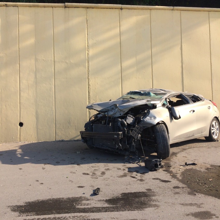 Метров 50 разделительного бордюра отсутствует, кусты на разделителем «сбриты» почти наголо…