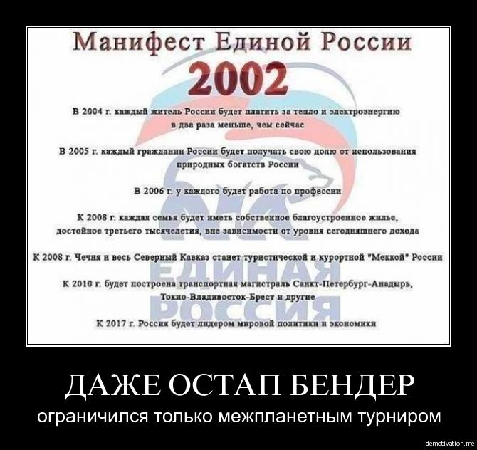 Вон и Горбачев обещал всех квартирами к 2013 году обеспечить. Думал, что ли, что так долго у власти удержится?
