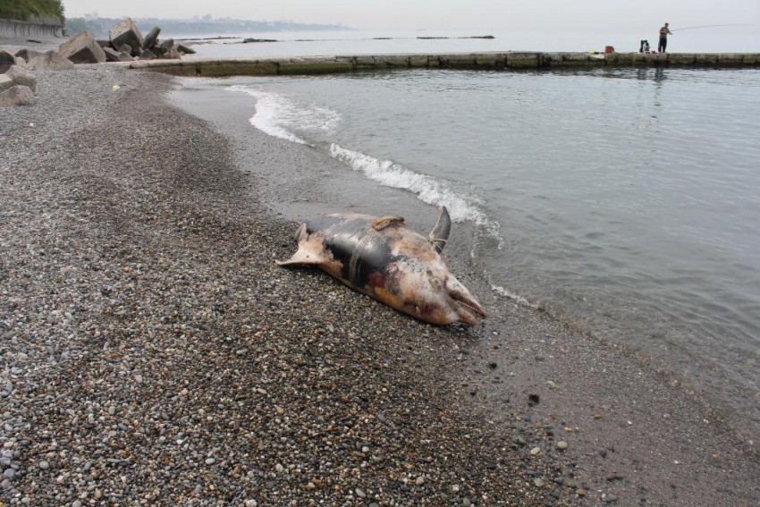А этот дельфин лежит на ж.д.платформе 73-км… Видимо в сетях запутался...