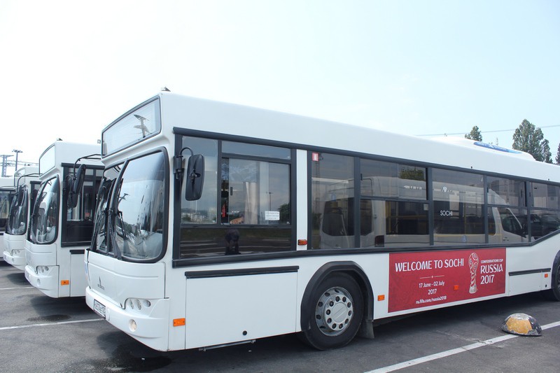 Городской автотранспорт Сочи украсили символикой Кубка конфедераций 2017 года.