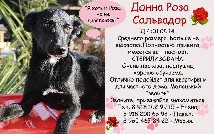 Тел: 8 988 151 09 25 — Юлия — куратор собаки.