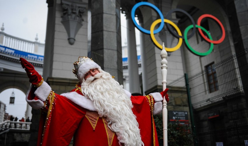 В канун старого нового года Дедушка Мороз навестил Сочи, купил билеты на хоккей для Снегурочки и проверил свою резиденцию в Олимпийском парке.