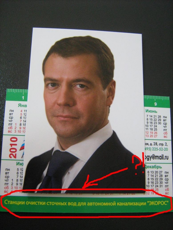 Спасибо, Макс. :-) Минусовать надо тех, кто такие календарики придумал. Я не фанат Медведева, или Путина, но производителям нужно иметь хоть какое-то уважение к первым лицам государства. Я так думаю…