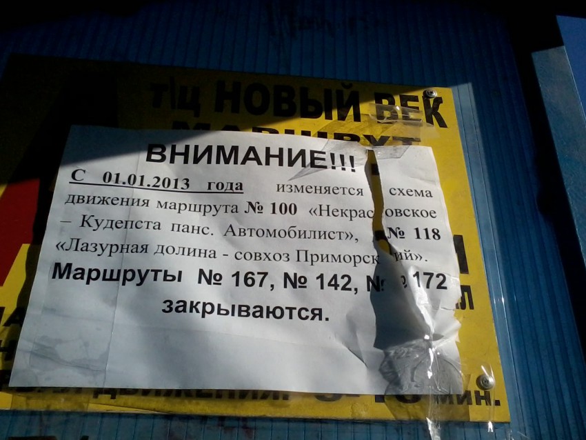 Вот такое объявление висит на конечной 167-го — на «Новом веке»: