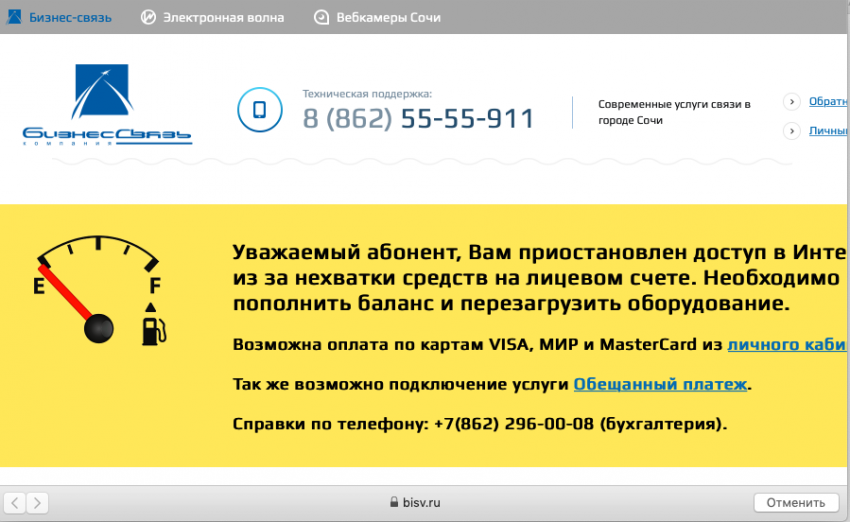 Когда прикрутите напоминалку по оплате? Чтобы абонент не оставался неожиданно без интернета, потому что просто забыл оплатить? Когда сделаете так, что если не оплатил, то связь не отрубалась полностью и давала хотя-бы возможность зайти в ЛК и положить денег на счет?