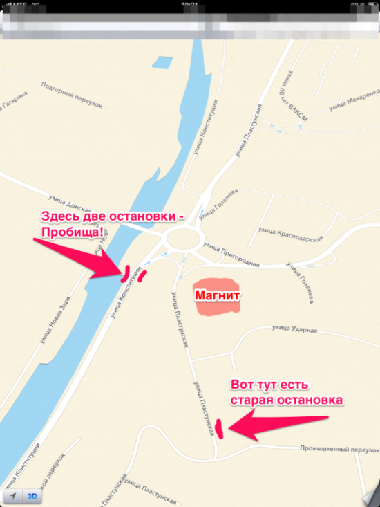 Дано: две параллельные улицы, на одной из них огромный магазин. Из магазина в больших объемах постоянно выносятся покупки — время посадки в общественный транспорт растет в геометрической прогрессии. Остановки в обе стороны расположены на одной улице, на которой в аккурат ровно две полосы. При этом на параллельной улице, где и находится так манящий всех магазин, когда-то давно общественный транспорт все же ходил, даже остановка осталась. Но пустить автобусы до Макаренко по Пластунской, а с краснодарского кольца в город — по Конституции, или как-то еще облегчить жизнь людям, мешают неведомые силы.