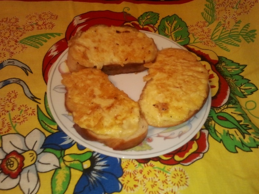 Понадобится сыр (я беру обычно Российский), чем твёрже, тем лучше, 100-200г… Его надо натереть на крупной тёрке (я делаю это с вечера). Самый простой вариант- просто смешать с яйцом (только не делайте жидкие кеси-меси)))), но можно добавить в эту смесь зелень, можно потереть ветчинки, если делаете на закуску- выдавить чеснок.На белую булку (я беру нарезной батон, сразу нарезанный) намазываете полученную массу и кладёте ЕЮ вниз на горячую (!) сковородку, смазанную маслом.Пока хорошо не подрумянится не трогайте их, иначе сыр сползает! После переворачиваете на вторую сторону и подрумяниваете булку насколько Вам хочется. Есть только с пылу-с жару, холодные- совсем не то!
