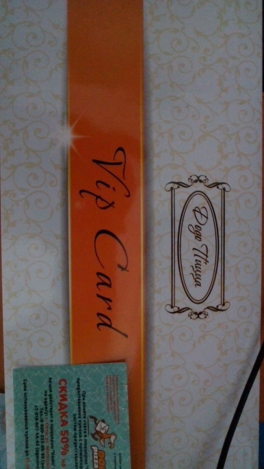 Начну с начала. :) Как я понял была рекламная акция! На месте работы жены молодой человек распространял VIP-карты DODO pizza,