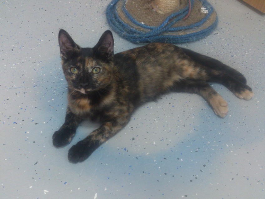 Я нашла эту трехцветную малявку еще трехнедельным котенком, который сам даже не ест. Она была в жутком состоянии: инфекция, гнойные глаза и нос, куча блох, яйца личинок мух на шерсти. Первую неделю выкармливала ее со шприца, потом она уже сама начала чавкать потихоньку. Тива прошла курс лечения, и теперь полностью здорова и готова ко встрече со своими новыми любящими хозяевами! Из-за инфекции Тивали осталась слепой. Но многие уже знают, что единственное обязательное требование в эксплуатации слепой кошки — это сетка на окнах в квартире. Больше она НИЧЕМ НЕ ОТЛИЧАЕТСЯ от обычных котят своего возраста. Она бегает, играет, ориентируется в пространстве, знает где туалет, вода и еда. Она прекрасно себя чувствует, потому что не знает, как жить по-другому. Это озорной и активный, вполне самостоятельный маленький комочек жизни.