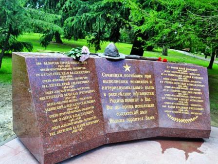 больше десяти тысяч пацанов там полегло.Это не является основанием ставить памятник в центре г. Сочи на зеленой зоне Комсомольского сквера, созданного сочинцами для отдыха, а не для возложения цветов в память тысячам погибших там Афганистане.