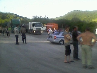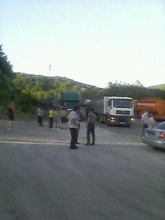 Разобравшись в ситуации, мы поняли, что нужно прорываться, гаишники предложили подождать темноты.Специальные счетоводы из администрации насчитали 160 авто, причем их интересовал груз, вес, откуда и куда и все подробности. Стоял МАГНИТ, бензин, трубы для олимп стройки и много простых смертных. Собрались хозяева грузов, водители фур,