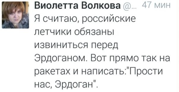 То есть вам наплевать, что туркиши вероломно напали и убили наших воинов, сражающихся с мировой чумой — террористами ИГИЛ? Я правильно вас понял?