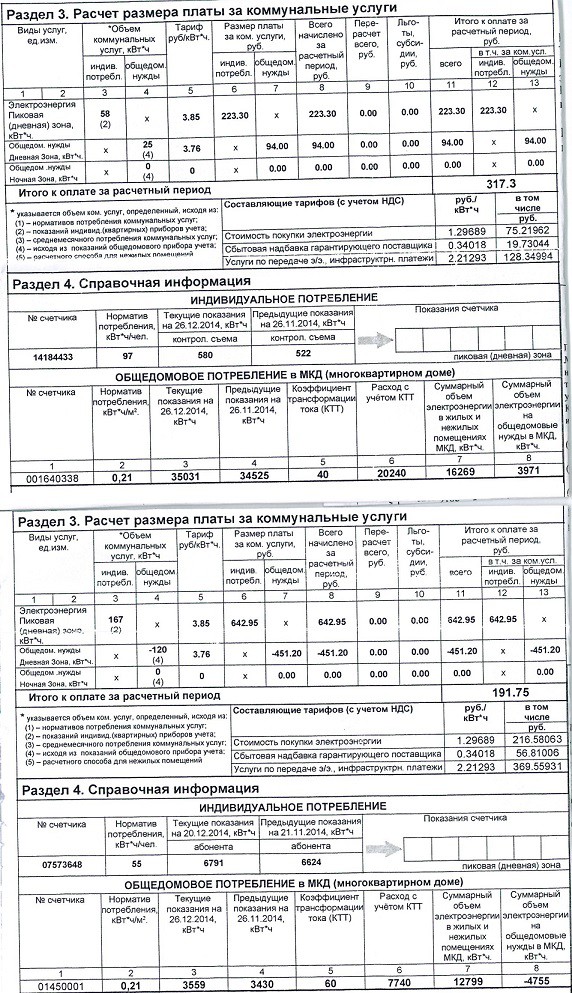 Кто может пояснить цифры по общедомовому потреблению в столбцах 5 и 8. И почему коэффициенты трансформации тока (ККТ) в столбце 5 отличаются в разных домах? Значения в столбцах 7 и 8 вообще непонятно откуда берутся, если разница показаний определяется в столбцах 3 и 4.