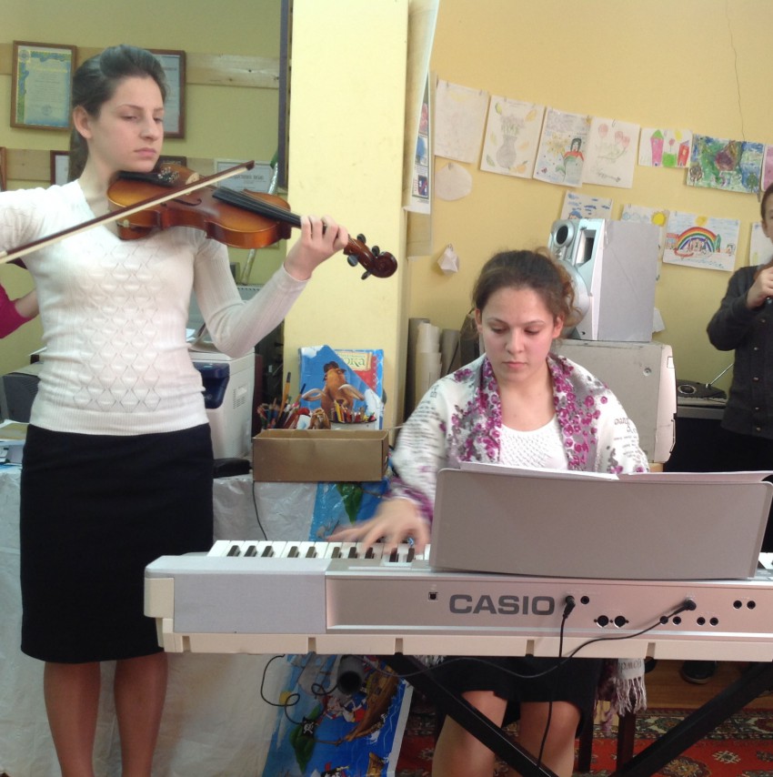 Поднять настроение старикам? Вся семья дает концерты специализированном социальном доме. Дети все музыкально образованы.