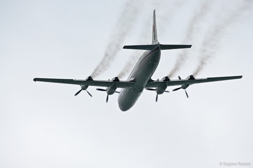 Это самолет-облетчик Ан-26 компании «Летные проверки и системы» — проверяет исправность наземного оборудования после ремонта основной ВПП.